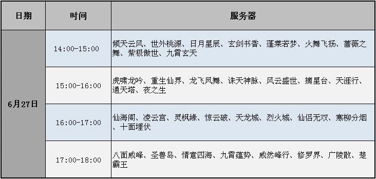 活动开放时间及参与服务器: