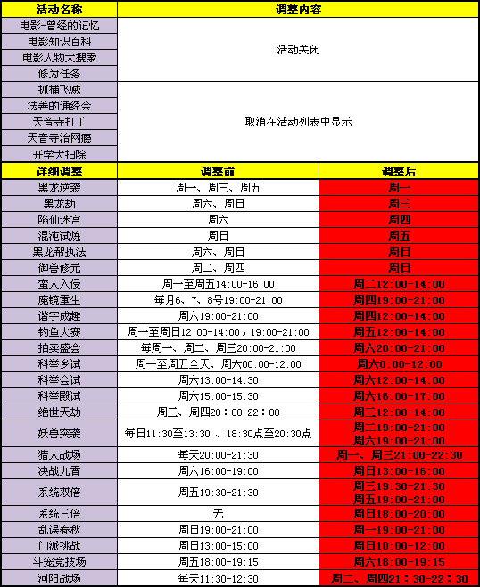 26.为了更加合理安排游戏时间,活动时间进行调整;