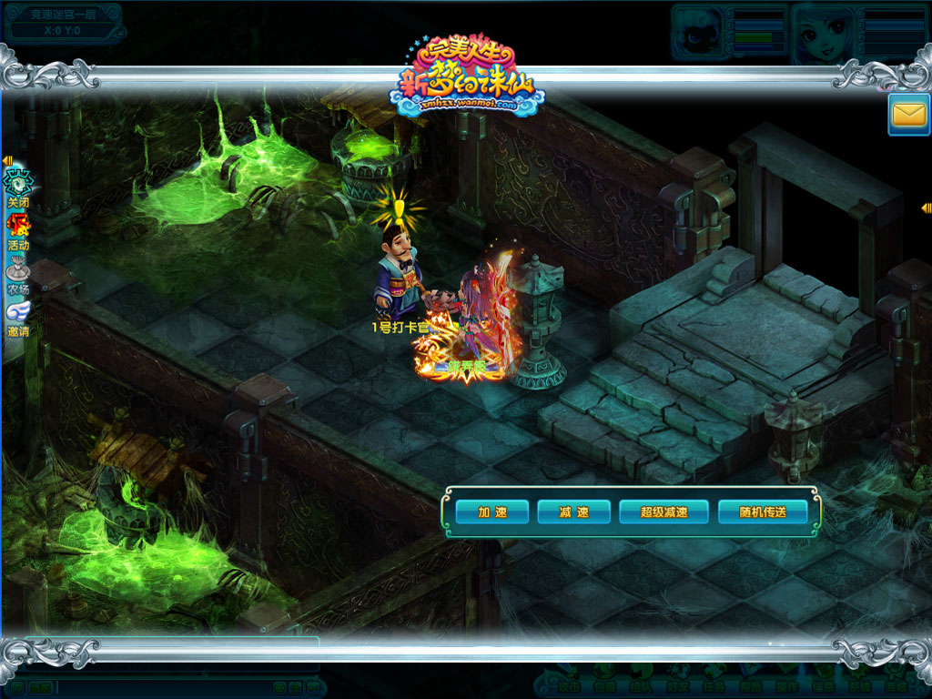 4.在寻找NPC的路上充满荆棘,需要以最快的速度击杀明雷怪。名雷怪会掉落加速、减速符等道具。加速是让自身的移动速度增加,持续5秒;减速则是让对手降低移动速度5秒;超级减速是让对手的移动速度降低到几乎无法移动的效果;随机传送是让对手随机传送到地图中的任意一点。