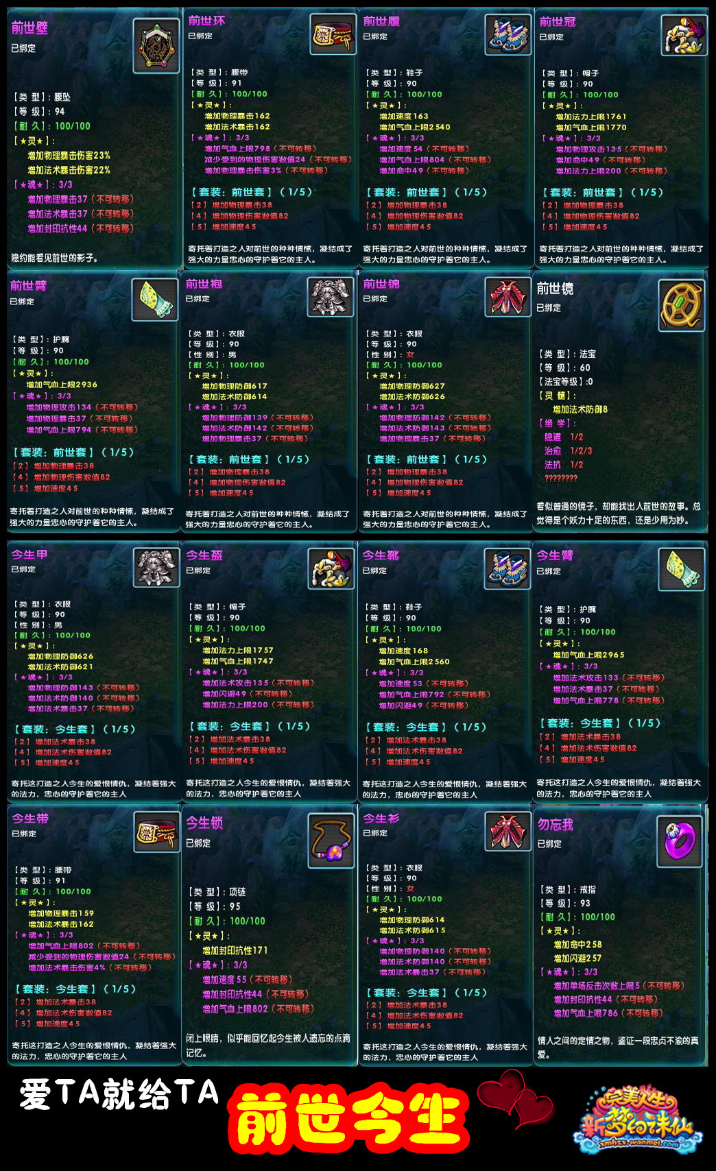 前世今生副本中,最抢眼的的当属“前世套装”与“今生套装”。此乃情侣间最能体现真挚情感的战斗套装之一,正所谓:爱TA就给TA前世今生吧!进入此副本的先决条件是队伍中的5位成员等级必须高于90级,队长携带“诛仙第五章”且需主线剧情分达到221分。击溃最终BOSS,会掉落一个神秘宝箱,究竟能开出何种宝贝,就看你的命运啦!