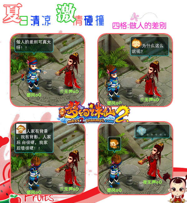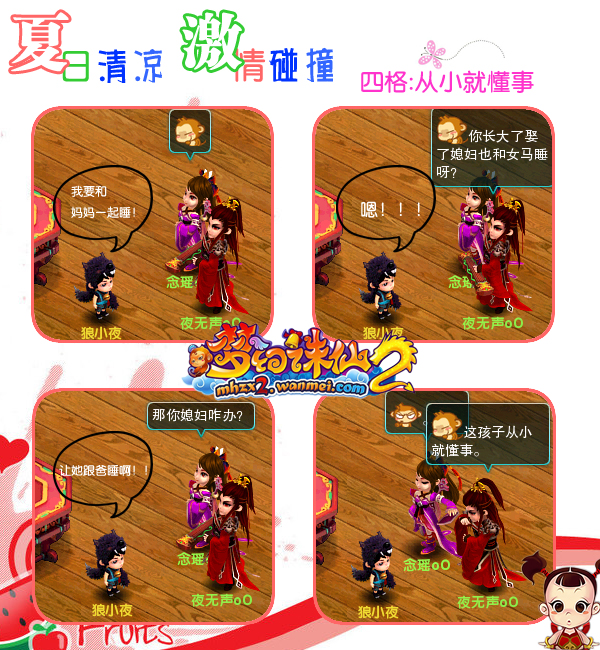 《梦幻诛仙2》玩家麦咪的四格作品从教育子女到生活琐事上寻找灵感,发现幽默,博我们为之莞尔一笑。如果你也有某项才艺,欢迎在《梦幻诛仙2》官方论坛>>上尽情展示!我们将及时报道,让你红遍仙侠世界!