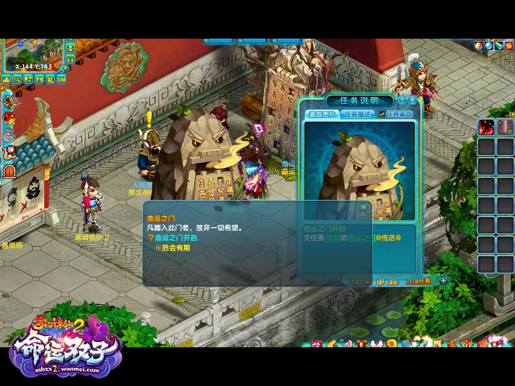 要参加《梦幻诛仙2》新版本的“命运之门”的活动,你需要找到至少另外两位跟自己一样处于80级以上的玩家,一同前往京城找一个类似石碑的【命运之门】NPC领取任务。